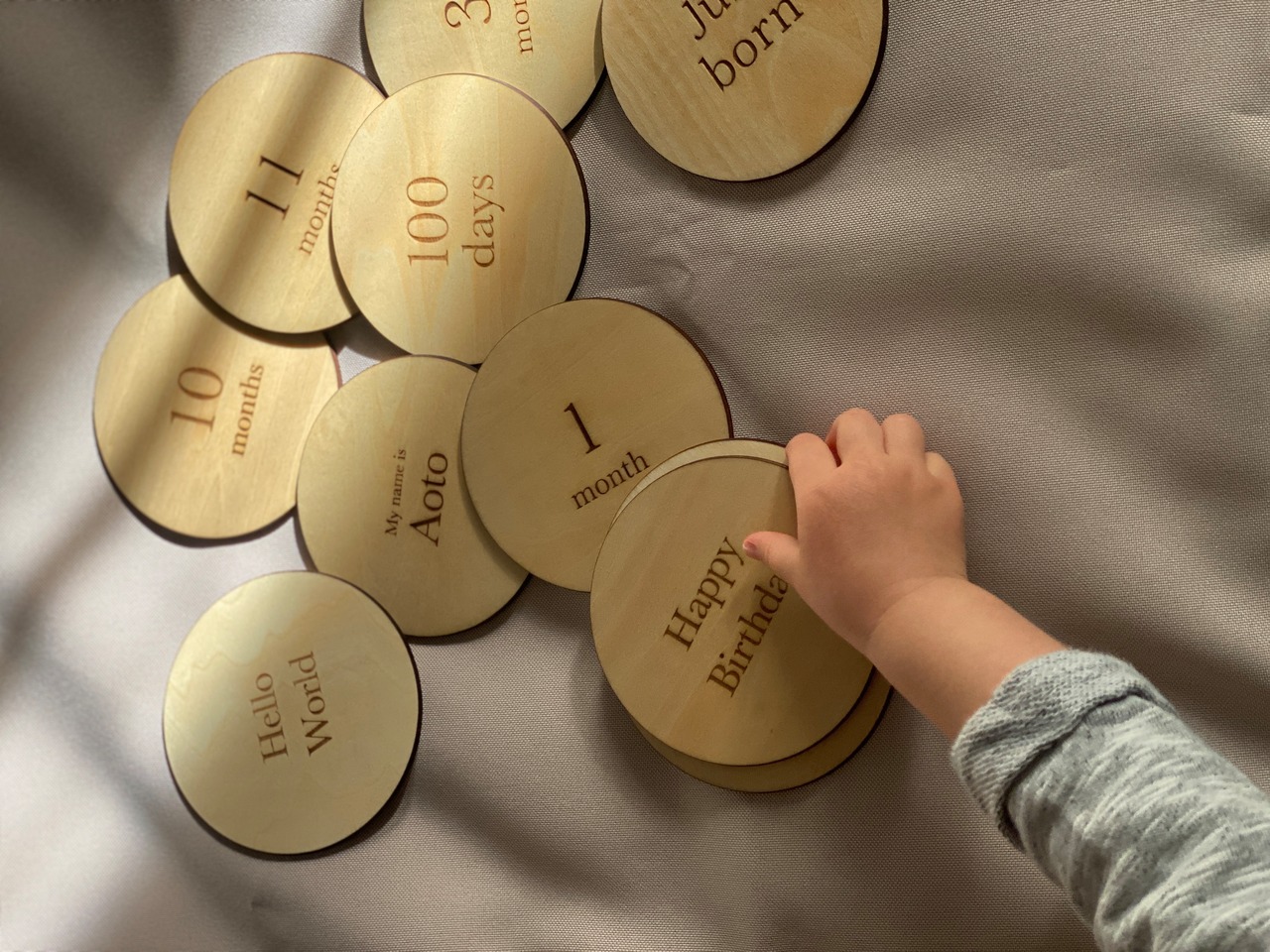 手触りもやさしく、赤ちゃんの成長写真に自然になじむデザインです。